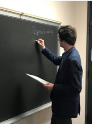 In addition to guiding the discussion and unifying the readings into larger themes, Julian’s role as a TA is to acquire feedback on the course. The students had recently turned in an assignment and, on the professor’s behalf, he solicited their opinions to see if it could be further improved for the next time the course is offered. Outside of discussion sessions, TA’s are there to support students as they work on assignments, offering weekly office hours where students can clarify their understanding, work through new ideas, or receive feedback on their work before they turn it in.
